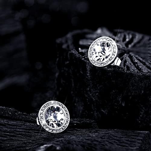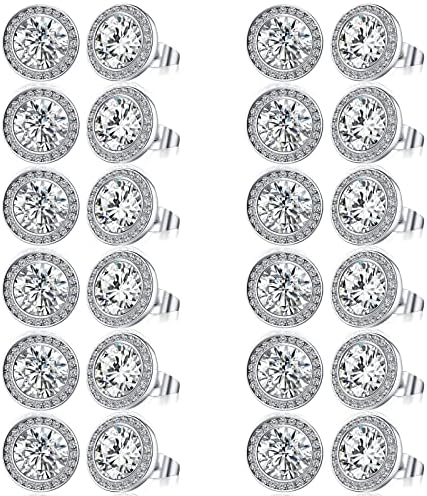 Bonuci 12 Pairs Dance Earrings Rhinestone Earrings Round Silver Crystal Stud Jewelry for Women Competition 15 mm
