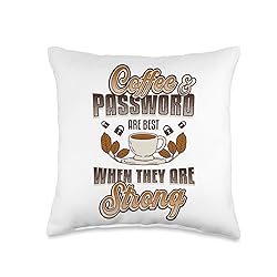 Coffee & Passwords Are Best When They Are Strong. Network engineer and it tech support motif for computer scientists. 100% spun-polyester fabric Double-sided print Filled with 100% polyester and sewn closed Individually cut and sewn by hand Spot clean/dry clean only