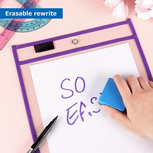 - Application: These oversized reusable dry erase pockets make it easy to store your valuable documents, perfect most of the student activity sheets, work files, office documents, job ticket orders and more.
