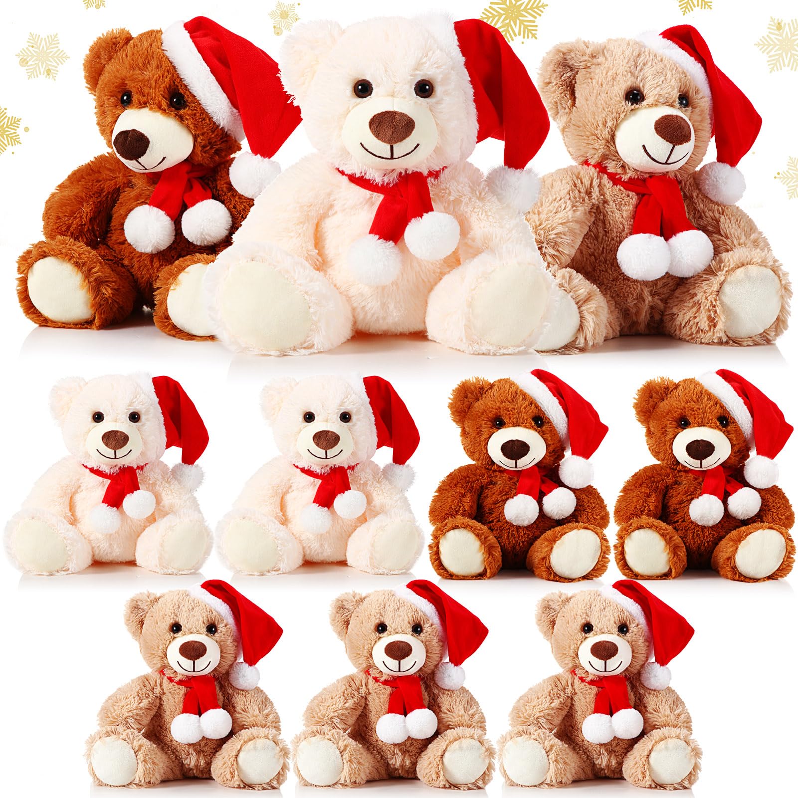 - Package includes: this bear stuffed animal set include 10 plush bear doll toys in brown; The soft plush and floppy body with exquisite facial features make this a cuddly companion