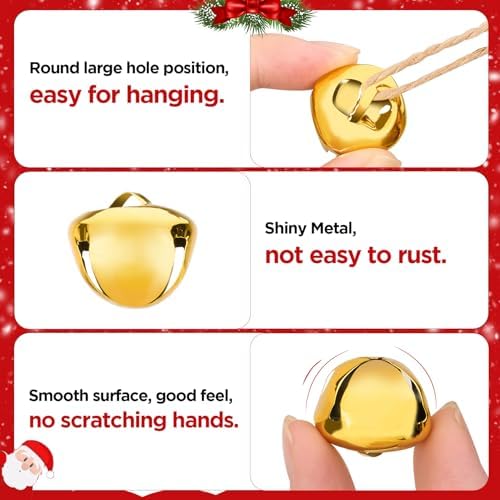 - Quantity: 100 pieces 1 inch jingle bells in package, 50 x Gold jingle bells, 20 x Green jingle bells, 20 x Red jingle bells,10 x Silver jingle bell,enough to add more content for every festival decoration