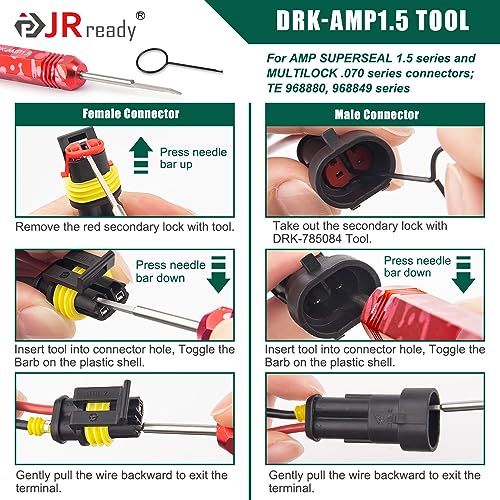 JRready ST5234 Juego de Herramientas Extractora de Pines para AMP Super Seal1.5 /Paquete Metríco 150,280/TE 968880,968849/ Kit de Conectores JST,Kit de Herramientas para Retirar Terminales Sellados Masculinos/Femeninos de Conectores de Cables Automotrices 5PCS