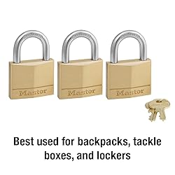For indoor and outdoor use; Padlock with key is best used for backpacks, briefcases, tackle boxes, lockers and storage locks Keyed padlocks feature a durable solid brass body to resist corrosion and a hardened steel shackle for cut resistance 4-pin cylinder and dual locking lever mechanism provides pick and pry resistance 1-9/16 in. (40 mm) wide lock body; 1/4 in. (6 mm) diameter shackle with 7/8 in. (22 mm) length, 13/16 in. (21 mm) width Includes three padlocks, two keys; same key opens all locks