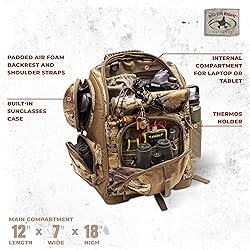 - Finally there's a backpack with the quality and durability of a deluxe backcountry pack with all the features needed to sling mud in the duck marsh. This bag features full foam floatation throughout, deluxe molded EVA bottom, built-in sunglasses case, integrated unique paracord handle, thermos holder, side and front handles with daisy chain for attaching Rig'Em Right Decoy Anchor Clips, padded airfoam backrest and shoulder straps and a large internal compartment for carrying lots of gear. Additionally, this backpack has an internal pocket for laptop or tablet, enabling it to double as a travel bag. This is truly the ultimate waterfowlers backpack. Approximate dimensions of exterior: 17" high x 8"deep x 13" wide