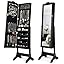 COSTWAY Mirror Jewelry Cabinet, 4-Angle Tilting Jewelry Organizer with Full-length Mirror & Large Capacity, Lockable Standing Jewelry Armoires for Bedroom, Dressing Room (Black)