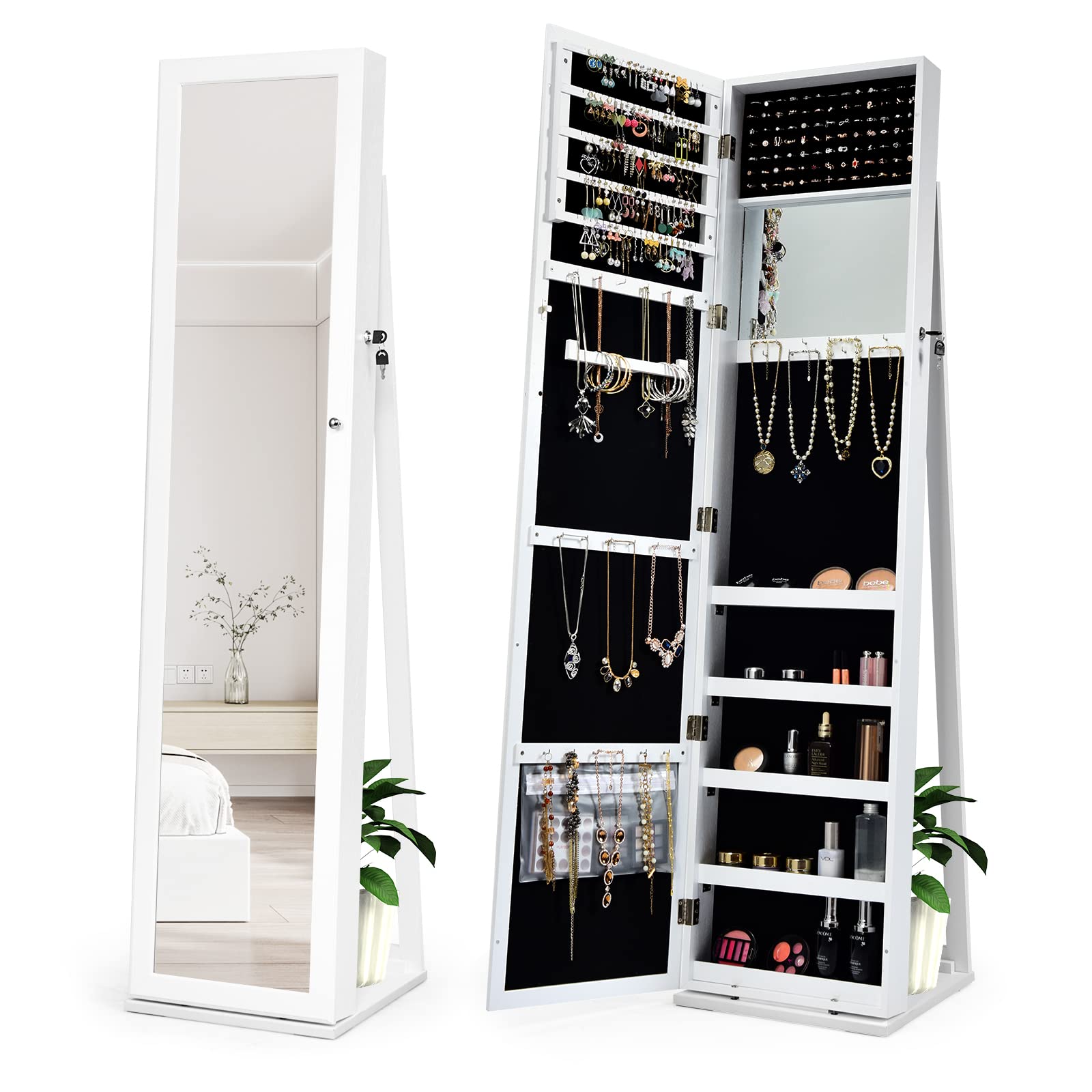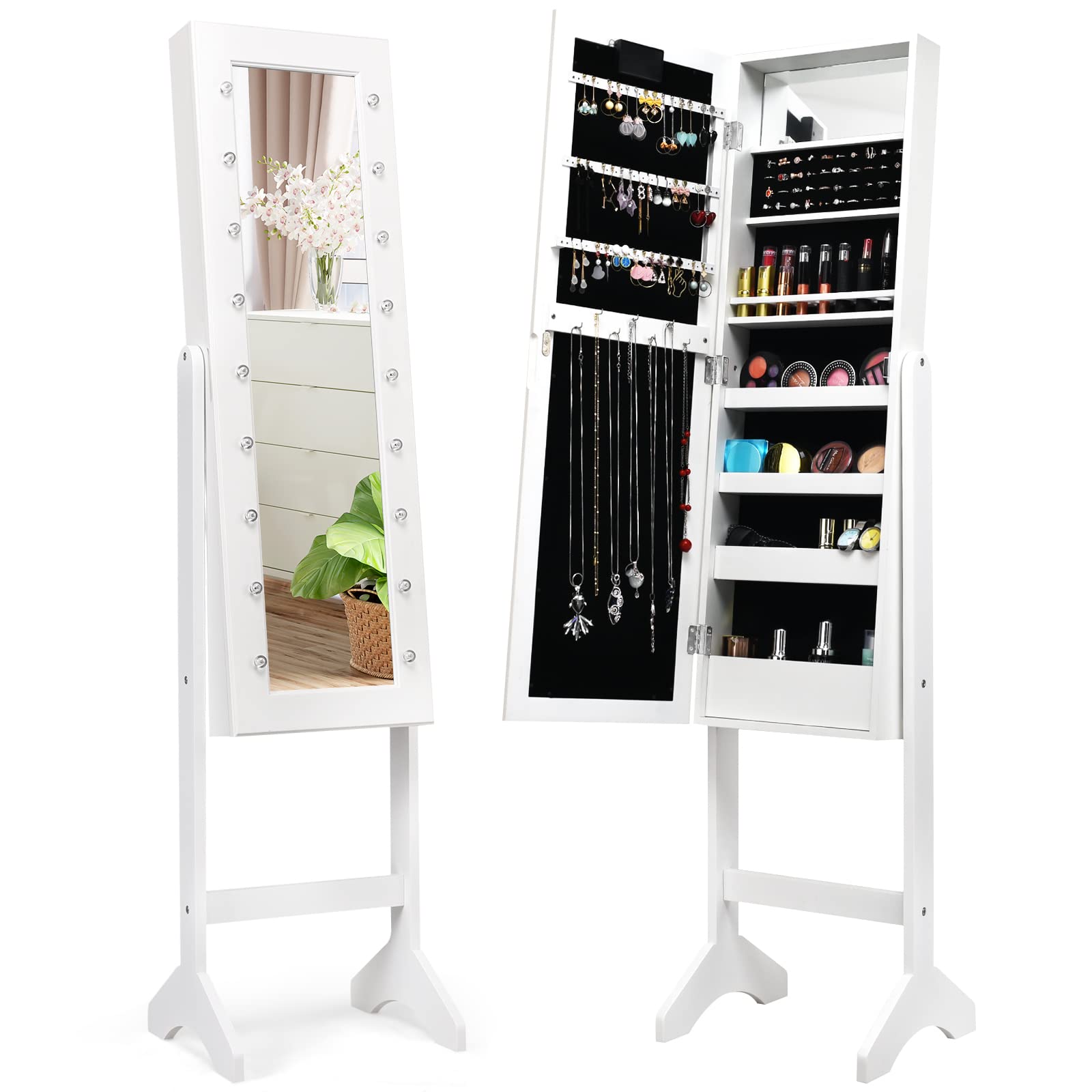 - [Perfect for Your Home and Loved]: With its glamorous look and high-definition mirror, our jewelry cabinet fits all types of housing space such as bedroom, living room or cloakroom. Also, it can be a perfect Christmas gift or a birthday present for your loved one to store their valuable jewelry.