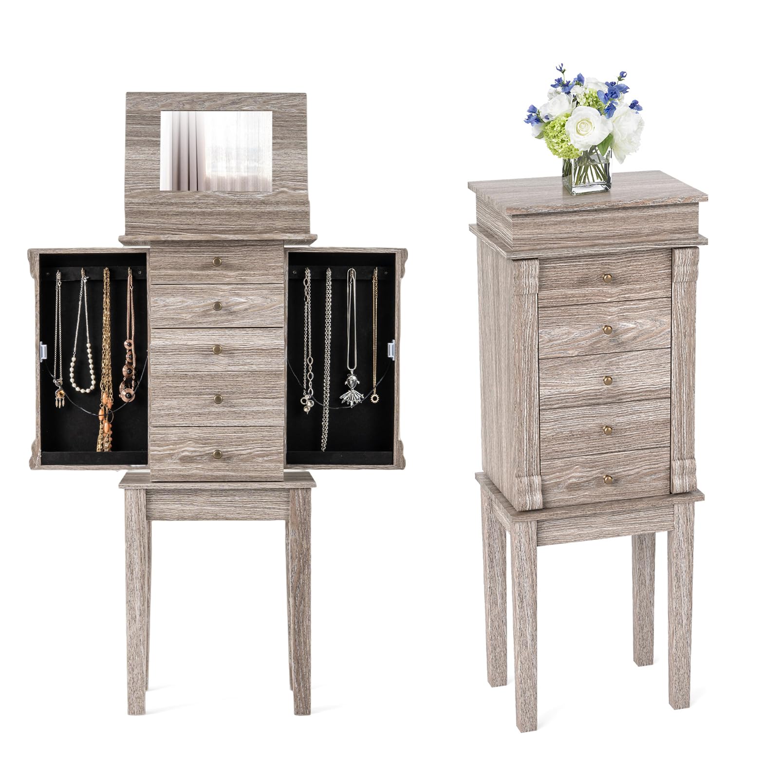 - [Premium Material & Lockable Design]: Made of premium MDF board, the jewelry storage cabinet offers longtime use. Soft velvet liner protects your jewelry from scuffs and scratches. And equipped with a lock and 2 keys, the jewelry armoires can prevent your valuable jewelry from being lost.