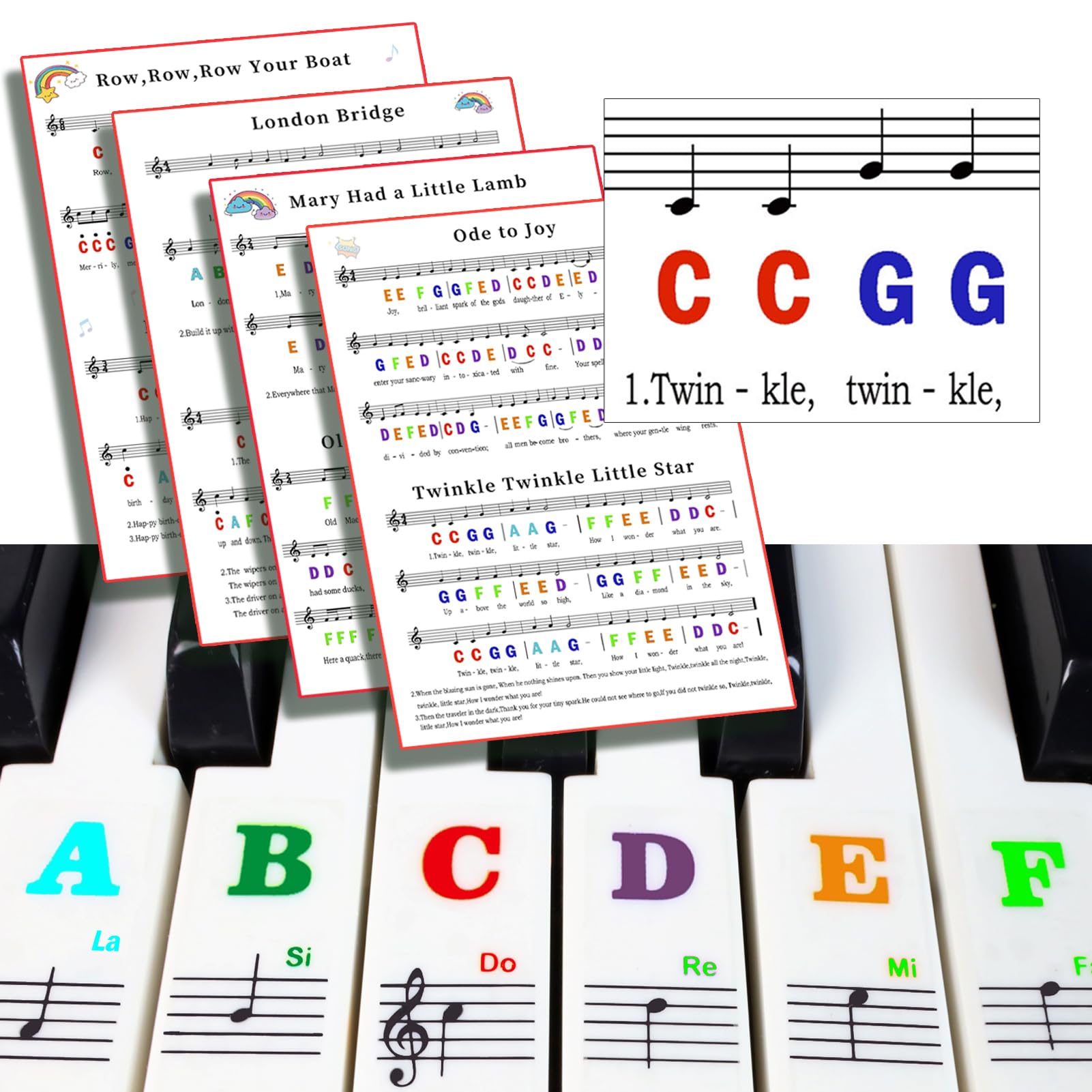 - BEGINNER FRIENDLY:You don't need to know the names of the keys or where the Middle C is, you just need to put the note strips on the piano keyboard. Done in seconds!