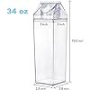 - Yarlung 4 pack 34oz(1L) plastic milk carton water bottles, measure 3''L x 3''W x 10''H, keep enough drink and store it easily in the refrigerator. Recommend to hand wash only, clean the bottle with a good flexible brush.