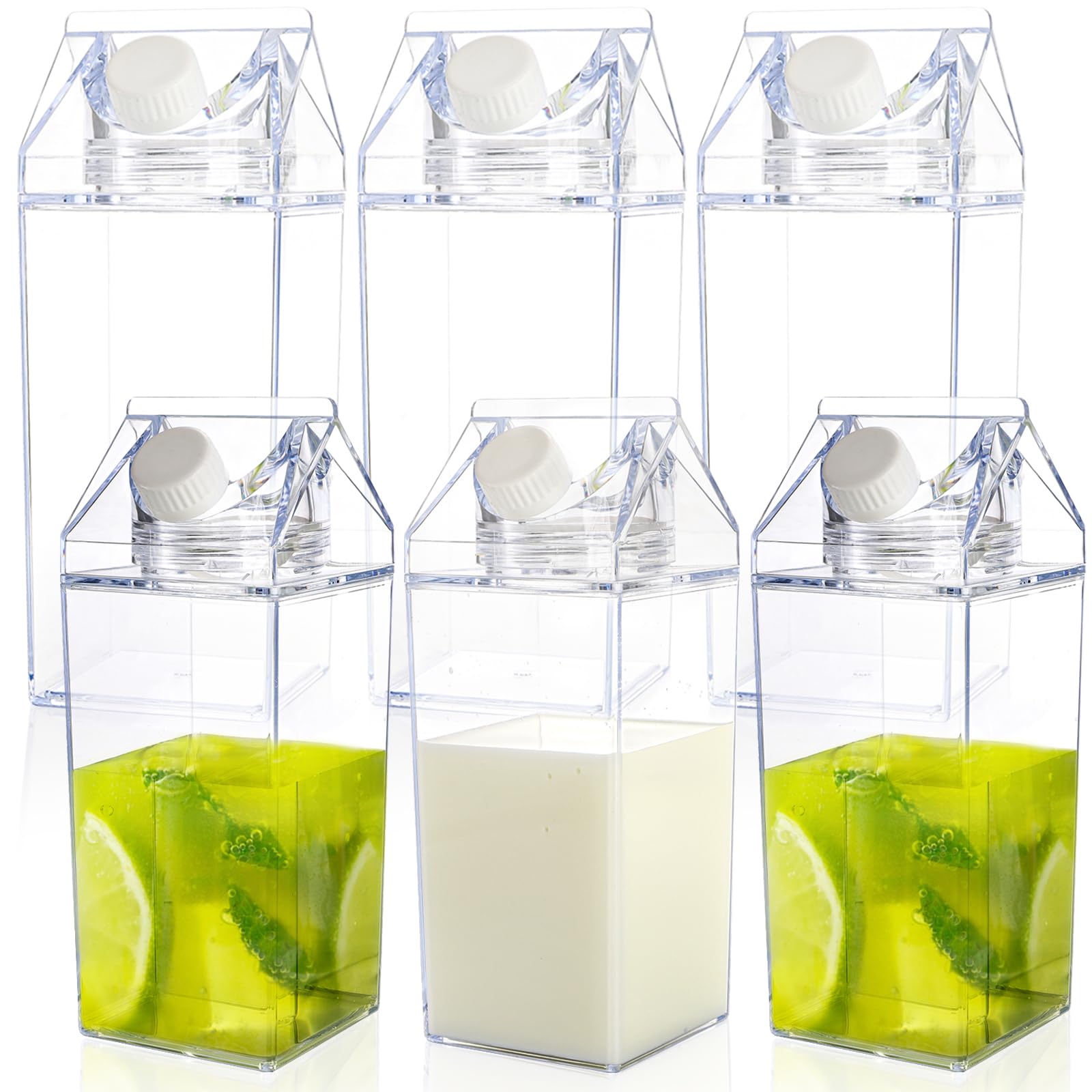 yarlung 4 Pack 34 Oz Milk Carton Water Bottle, Clear Plastic Milk Box Portable Leakproof Square Juice Bottle for Outdoor Sports Travel Camping