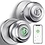 GeekTale Cerradura de Puerta de Huella Dactilar para Dormitorios, Pomo de Puerta con Cerradura, Cerradura Inteligente, Control por Aplicación, Claves de Repuesto, Pomo de Huella Dactilar para Dormitorios, Oficina, Apartamento