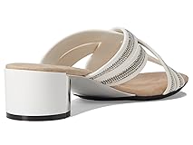 Elastic straps with crystal accents: Crossed soft elastic straps adorned with crystals Easy slip-on design: Soft, self-lined elastic for a comfortable fit Color-coordinated heel with metallic detail: Heel matches shoe color with a metallic accent Cushioned comfort: Fully cushioned footbed for all-day wear