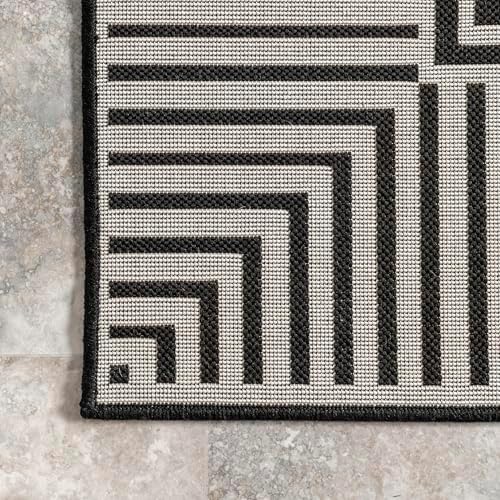 nuLOOM 5' x 8' Outdoor Area Rug, Casual Design With Striped Border, Stain Resistant, Highly Durable, For Patio, Balcony, Bedroom, Living Room, Dining Room, Bathroom, Black