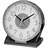 Silent No Ticking Analog Alarm Clock,Readable for Seniors Vision Impaired,Easy to Set,Big Snooze Bar,Crescendo Alarm,Gentle Wake,Led Light,AA Battery Operated,Black