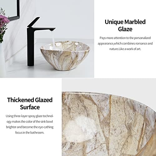 - ★【With Pop Up Drain & Simple installation】The easy-to-install countertop design allows you to install the vessel sinks without replacing the entire vanity. Package includes a pop-up drain with ceramic surface that perfectly matches sink bowl size and color. Drains quickly and effectively filters debris.Integrated simple Nordic style,you don't need to spend time and money to find a suitable drain, just install and use it directly.The bathroom vessel sink dimension is 16"L x 13.2"W x 5.8"H.