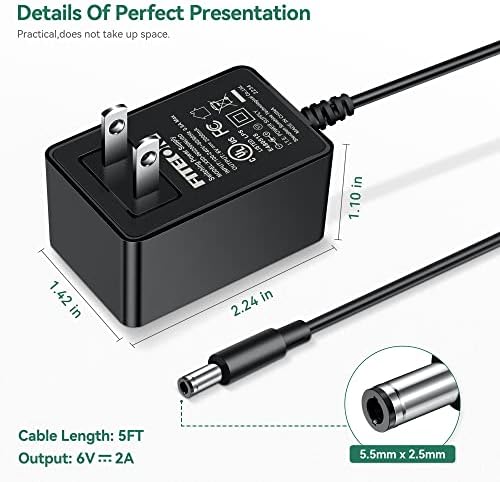 FITE ON 6V 2A [6 Volts 2 Amps] Adapter Power Supply AC to DC Plug 5.5 x 2.1mm & 2.5mm for 6volt 100mA 300mA 500mA 600mA 800mA 900mA 1000mA 1500mA 2000mA