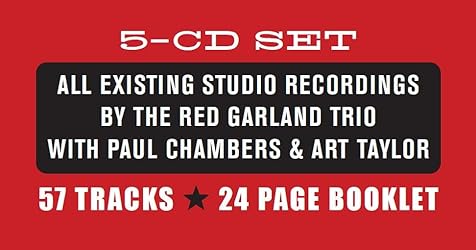 - CONTAINS 9 COMPLETE ORIGINAL LPS (ONE OF THEM APPEARING FOR THE FIRST TIME ON CD) & MORE! A superlative 5-CD set containing all existing studio recordings by one of the best jazz piano trios ever, that of Red Garland, Paul Chambers and Art Taylor. Included on this release are 9 complete original albums, as well as many other isolated selections that were only previously issued on various compilations. The LP Moodsville #6 appears here on CD for the first time ever! All tracks have been organized chronologically by session order. Paul Chambers and Art Taylor were members of Garland's regular working trio during this period. Garland became famous in 1955 when he joined the Miles Davis Quintet that also featured John Coltrane, Philly Joe Jones and Paul Chambers. Davis was a big fan of boxing and was impressed that Garland had boxed earlier in his life. Together the group recorded their famous albums, Workin', Steamin', Cookin' and Relaxin' (all of which were recorded in the course of just two marathon sessions). Garland's style is prominent in these recordings, where his distinctive chord voicings, his sophisticated accompaniment and his musical references to Ahmad Jamal's style are evident (Miles was also a great admirer of Jamal).. Includes 24-page booklet with original liner notes and artwork.