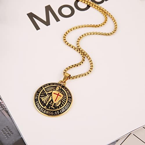 HZMAN Knights Templar Put On The Whole Armor of God Ephesians 6:13-17 Red Cross Design Stainless Steel Necklace for Men