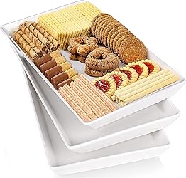 Large Serving Platters Set: 16 x 9.5 x 1.5 inches, deeper design with more capacity for parties and entertaining. Made of high quality ceramic, more durable and safer than plastic trays. These serving plates will meet your daily use—— suit for serving cupcakes, snacks, turkey, dessert, sandwiches and chips/salad. Ample Surface Area Design: With 16" x 9.5" of surface area, it is large enough to accommodate a large Thanksgiving turkey. Rectangular tray design makes it stable and outstanding from others. No-spilling edge design to prevent food runaway. The white color fits all decorations and is a timeless classic. Healthy and Safty:White serving platters are made of high-fire quality porcelain, it makes our rectangle plates strong and safe enough to put in the microwave, freezer, dishwasher and oven. Easier for hand-holding, effective for anti-slipping. Easy to Clean and Store: The smooth and elegant glaze of the platters for serving food, any stringy dipping sauce or sticky dessert can be cleaned easily by hand and dishwasher. And they are easier storage to save a lot of cabinet space for you. Ideal Gift Choice: With the smooth and charming appearance, these dinner platters coordinate well with other dinnerware. Holiday serving dishes set come with protective packaging, ideal gift for the wedding, party, gathering, birthday, entertaining and anniversary, which can be given joy to your family and friends.
