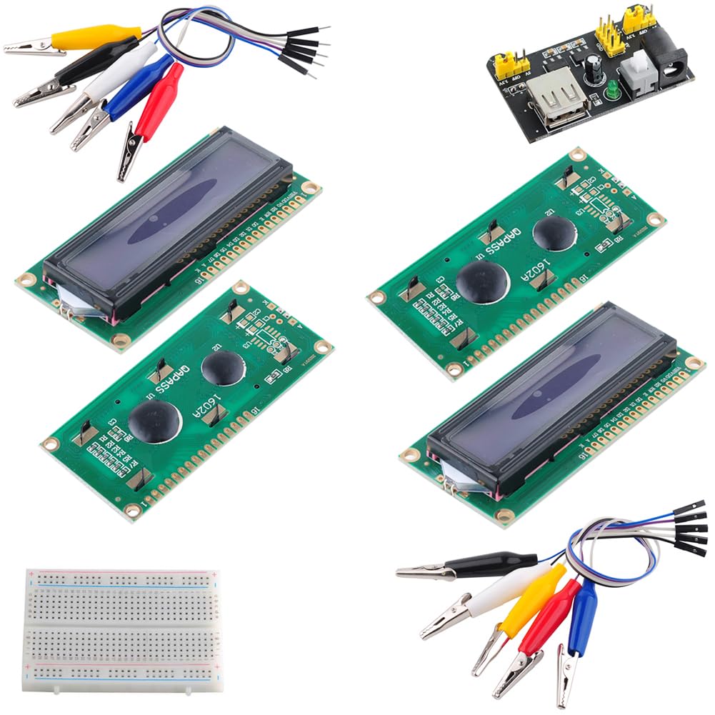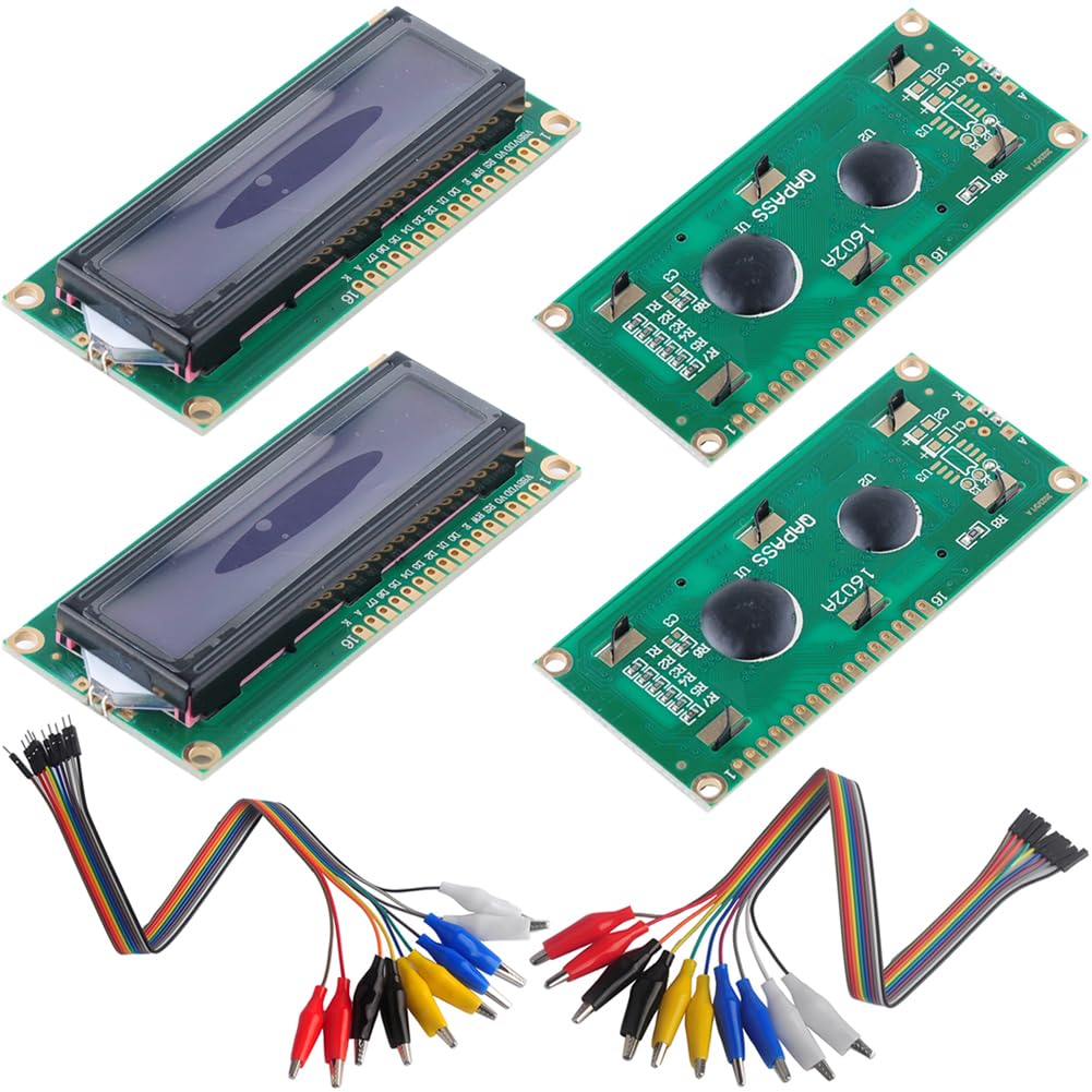1602 LCD Display Module DC 5V 16x2 White Character Blue Backlight 1602A 16 Pin Parallel Interface AIP31066 Controller for Arduino ESP32 Development Board (Pack of 2), no IIC