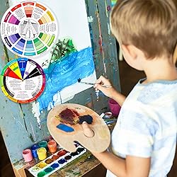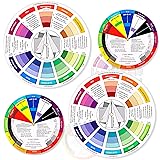 Package Include: you will receive 4 pieces of color wheels in 2 sizes, measuring about 5.5 inches and 9 inches in diameter, the artist wheels help show which colors are complimentary, and how they go (or do not go) together, ideal for learning how to color Color Mixing Guide: the color wheel chart shows color, from basic principles and color mixing results on the front side; Spin around the paint wheel, then you will find the color mixture results in the windows, to learn the color theory in a fun way Color Leaning Tool: the backside of the painters color wheel that visually illustrates relationships between colors and demonstrates the results features a grayscale, and triad colors tints and tones, definitions of color terms, and illustrations of color, such as complementary colors, and triad colors Easy to Use: this artist color wheel and mixing guide consists of 3 layers, made of quality cardboard with smooth surface and smooth rotation; And the size is moderate, easy to operate and carry Wide Application: our color wheel make up is suitable to use when painting, quilting, tattoo design, interior design, having creative craft projects, and home decorating; Suitable for artists, teachers, kids, painters, designers, tattoo learners and so on