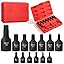 The set contains 13-piece 1/4-inch tamper proof torx bits, neatly stored in a convenient organizer sleeve. The sizes are printed in white on the organizer, enabling quick and easy recognition.Bates tamper proof torx bit set is made from industrial-grade S2 alloy steel, which undergoes hardening to minimize wear-outs. This ensures their longevity and durability even under heavy use.Each tamper proof torx bit is precision CNC-machined to provide a seamless fit and protect both the bit ends and the fasteners being worked on.To guarantee long-lasting performance, the star bits undergo an active manganese phosphate treatment, providing complete rust and corrosion resistance. This treatment enhances their durability and makes them suitable for use.The precision chamfer bit ends of the bits facilitate smooth insertion and engagement with fasteners. Additionally, the sizes are stamped directly on the bits for easy identification, and white printing on the storage organizer further aids in recognizing the correct size.