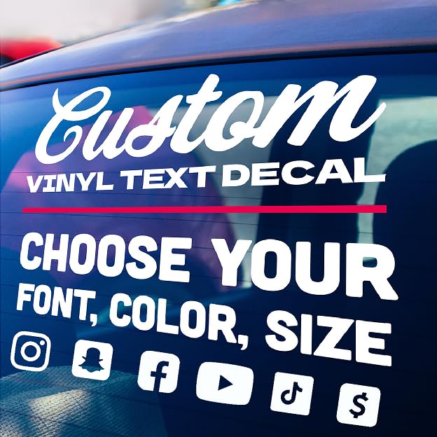 Elevate your style with high-quality custom stickers personalized to fit your vision. Made from premium vinyl and 100% produced in the USA, our vinyl custom decals are built to last and maintain vibrant color. Perfect for various uses like custom car decals, custom window decals, and custom stickers for cars, these decals are both versatile and durable. Choose from 25 colors, 30 fonts, and sizes ranging from 5 to 100 inches to design custom car stickers, custom name stickers, or even custom truck stickers. Before selecting the size, make sure to measure the surface where you plan to apply your custom decals for cars or any other surface to ensure a perfect fit. Designed for easy application on flat surfaces, whether indoors or outdoors, our custom made stickers come with simple instructions. Add a unique touch to your vehicle with vinyl lettering for cars or custom sticker lettering to make your style shine. Whether you need a personalized vinyl decal, a name decal, or custom sticker letters, our products are crafted for effortless customization. Choose our custom vinyl decals for quality that stands out on any surface.