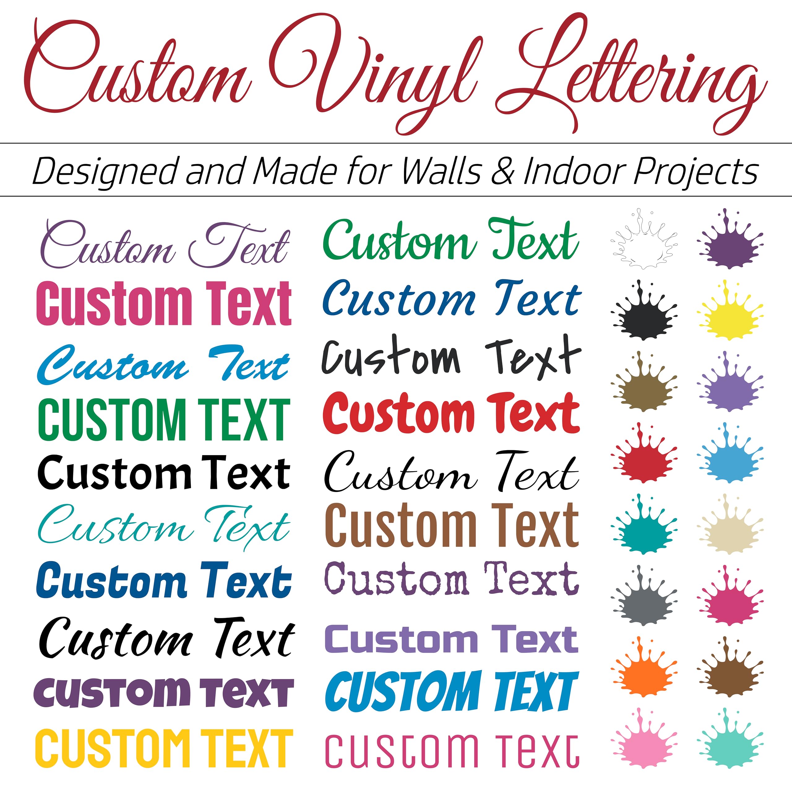 - VERSATILITY: Suitable for both indoor and outdoor applications on any flat surface, with 25 colors and 30 fonts available to make your custom vinyl lettering stand out.