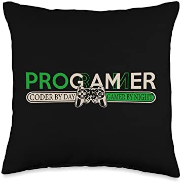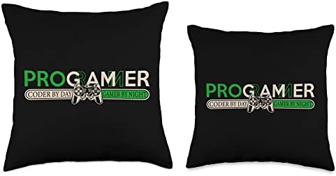 Funny Programmer Coder By Day Gamer By Night Coder Throw Pillow