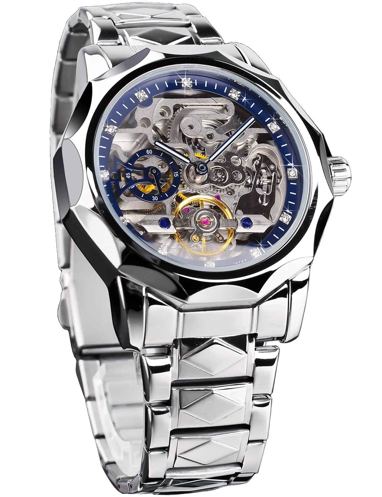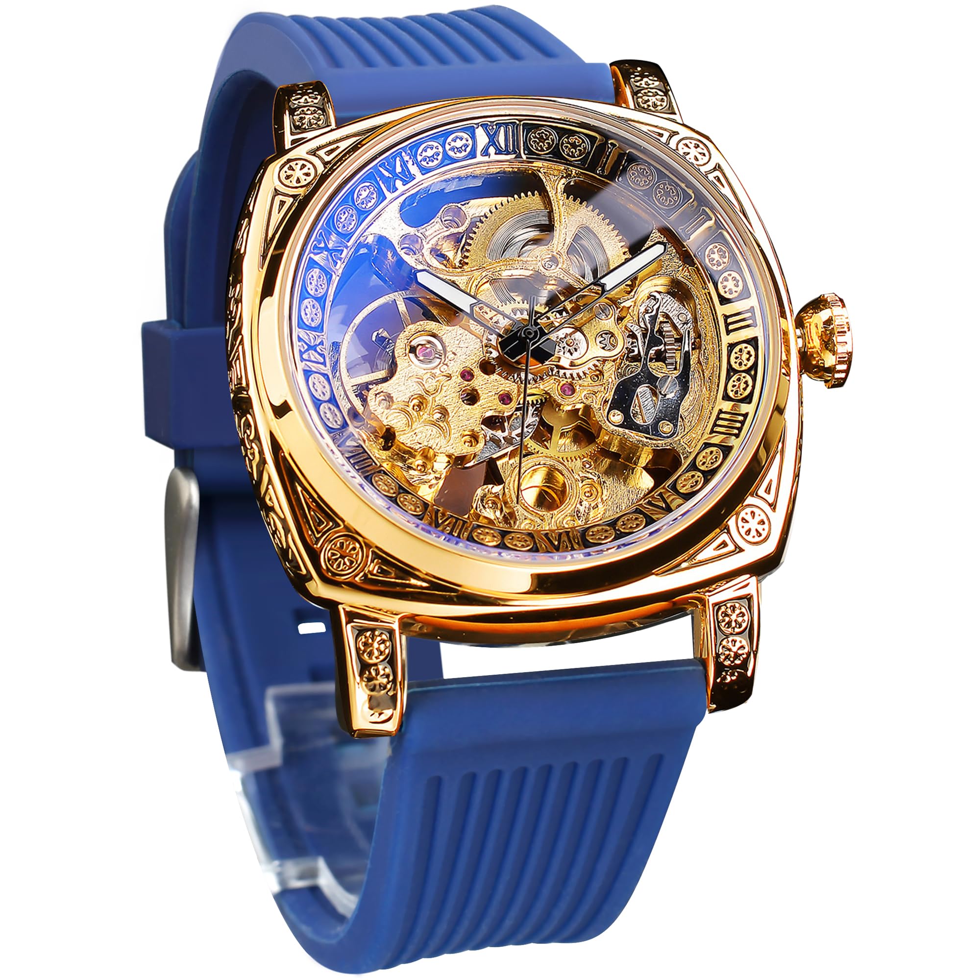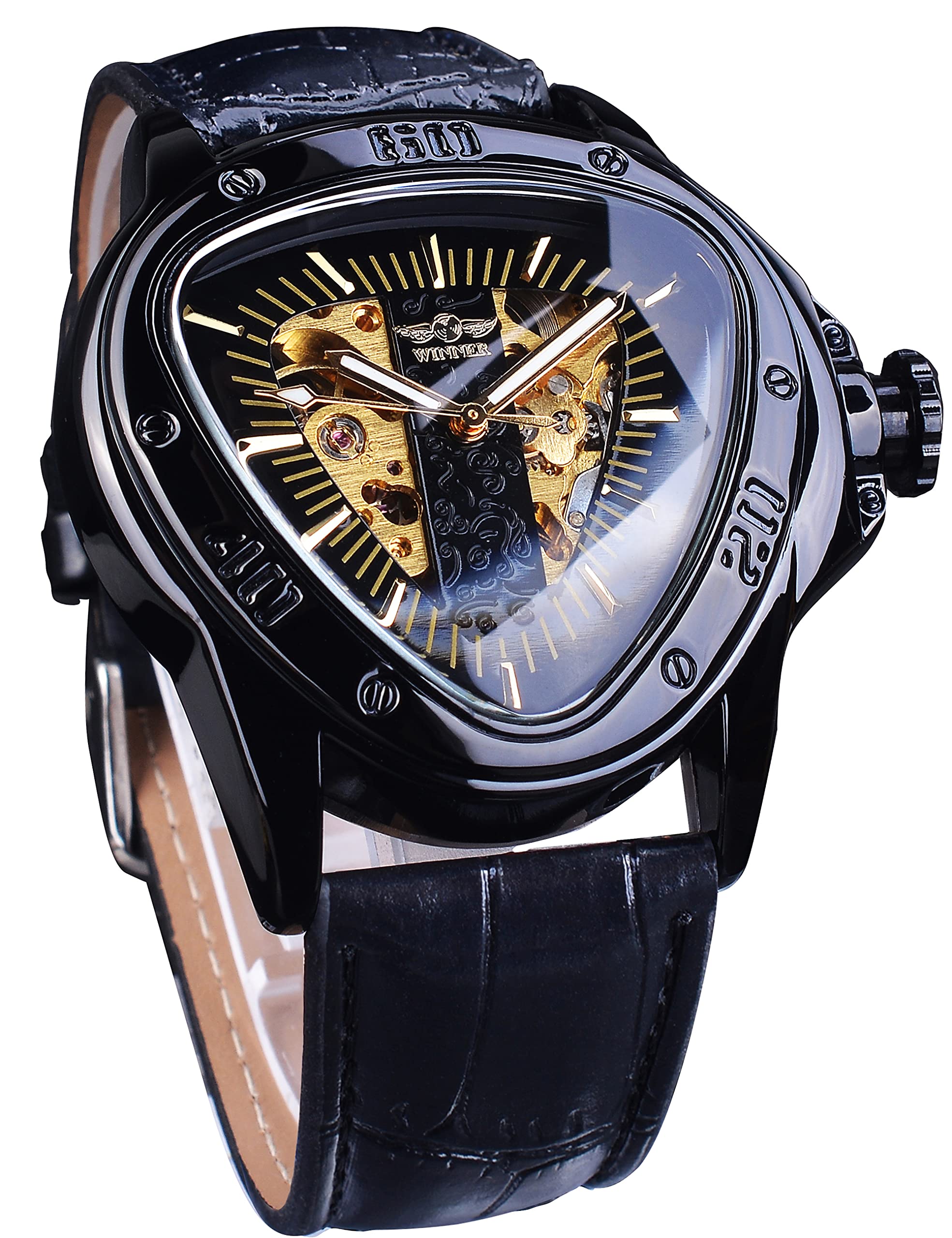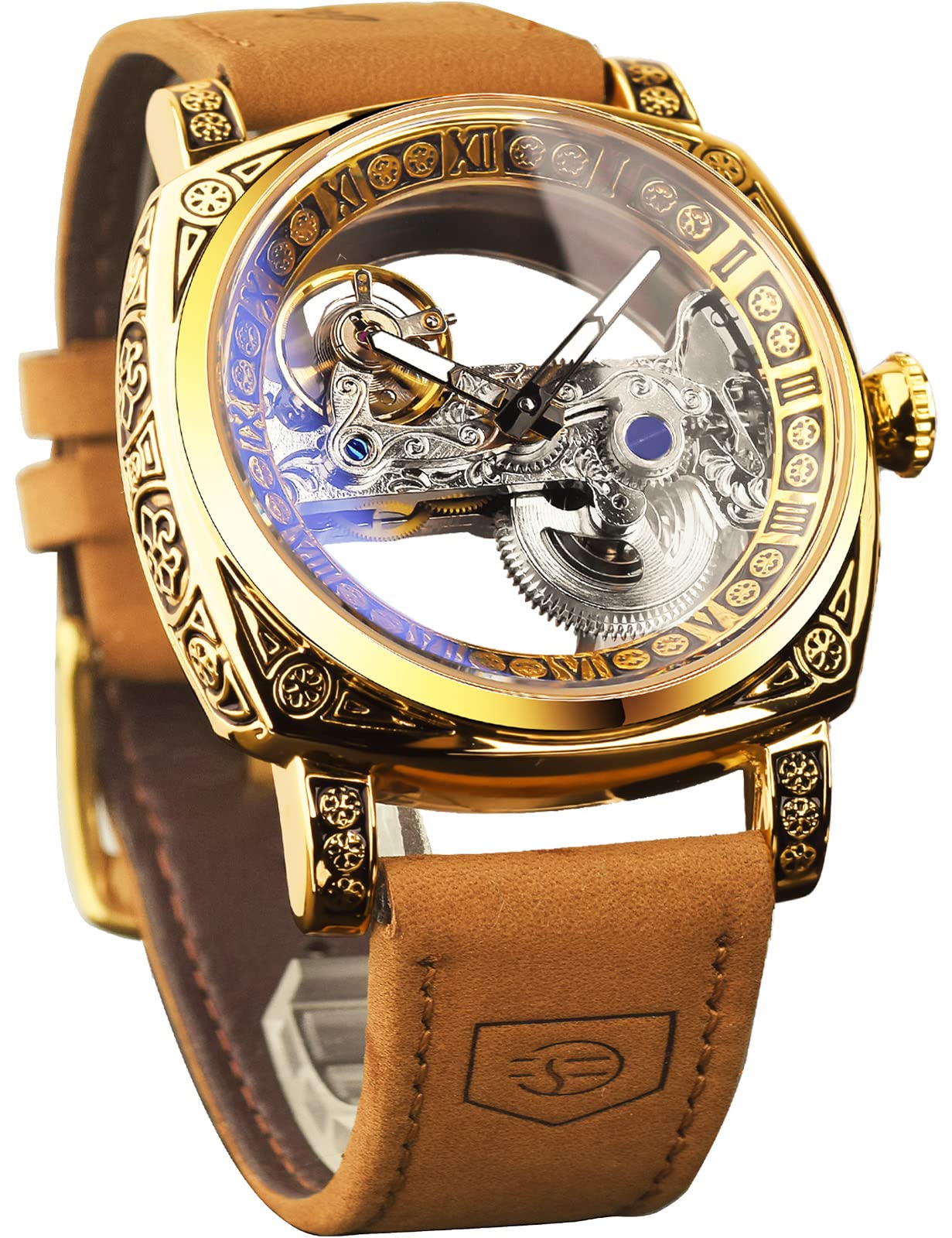 Men's Gold Luxury Tourbillon Watch Tiger Carved Moon Phase Self-Winding Mechanical Automatic Watches Retro Tattoo Skeleton Large Dial Leather Belt Wristwatch