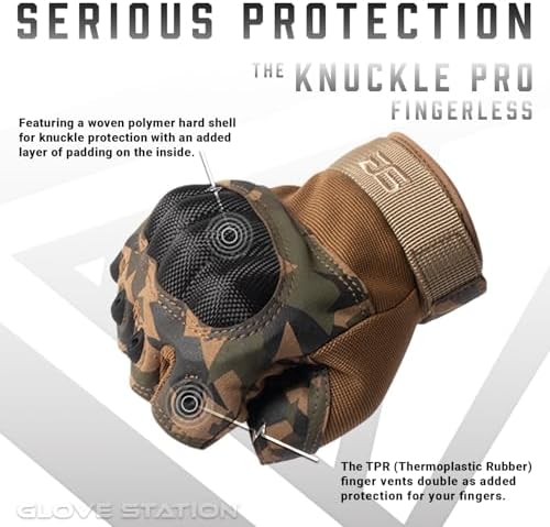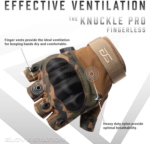Glove Station- Fingerless Knuckle Tactical Gloves for Men - Motorcycle Gloves for Tactical Shooting, Airsoft, Hunting, Police Work and Hiking