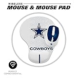 The mouse and mouse pad make perfect combo essential for work from home The wireless mouse adopts 2.4GZ technology to ensure reliable connection within 30ft range. The mouse features silent click and smooth glide tech as well as precise optical tracking. The mouse pad has soft gel wrist rest and anti-slip base for long-time use without fatigue NFL Officially Licensed Product