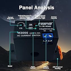Multi-Purpose: M3056 AC with rails current sensing switch is specially designed and manufactured to solve AC current monitoring. It uses the principle of mutual inductance to sense AC direct current, isolate the AC current, output normally open or normally closed switch signals, and directly control various automated industrial equipment, such as flash lamps, buzzers, relays, microcontrollers or other power load equipment. Upgrade: Compared with traditional transformers, thermal protectors and other devices, using this device can not only get more accurate and timely control, but also greatly simplify the design and reduce costs. Self-powered, no external power supply required. Input through current: 0-30A AC Rated load: 0.3A@240V AC/DC. High Performance: The switch has no limit on the number of times of opening and closing, and the response speed reaches the millisecond level. The hysteresis is less than 1% and can be used under strong magnetic conditions. Through structure design, isolation withstand voltage up to 2000V. LED Indication: The action current is 0-30A AC, which can be adjusted by the potentiometer. The LED indicator light can easily and intuitively indicate the working status of the switch. ABS material: High-power MOS tube non-contact electronic switch is used, and the shell is made of self-extinguishing material ABS, which is heat-resistant, acid-alkali-resistant, high impact strength and stable in performance.