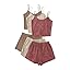 GORGLITTER Women's 3 Sets Ribbed Pajamas Set Sleeveless Crop Top and Tie Front Shorts Lounge Set Sleepwear Loungewear