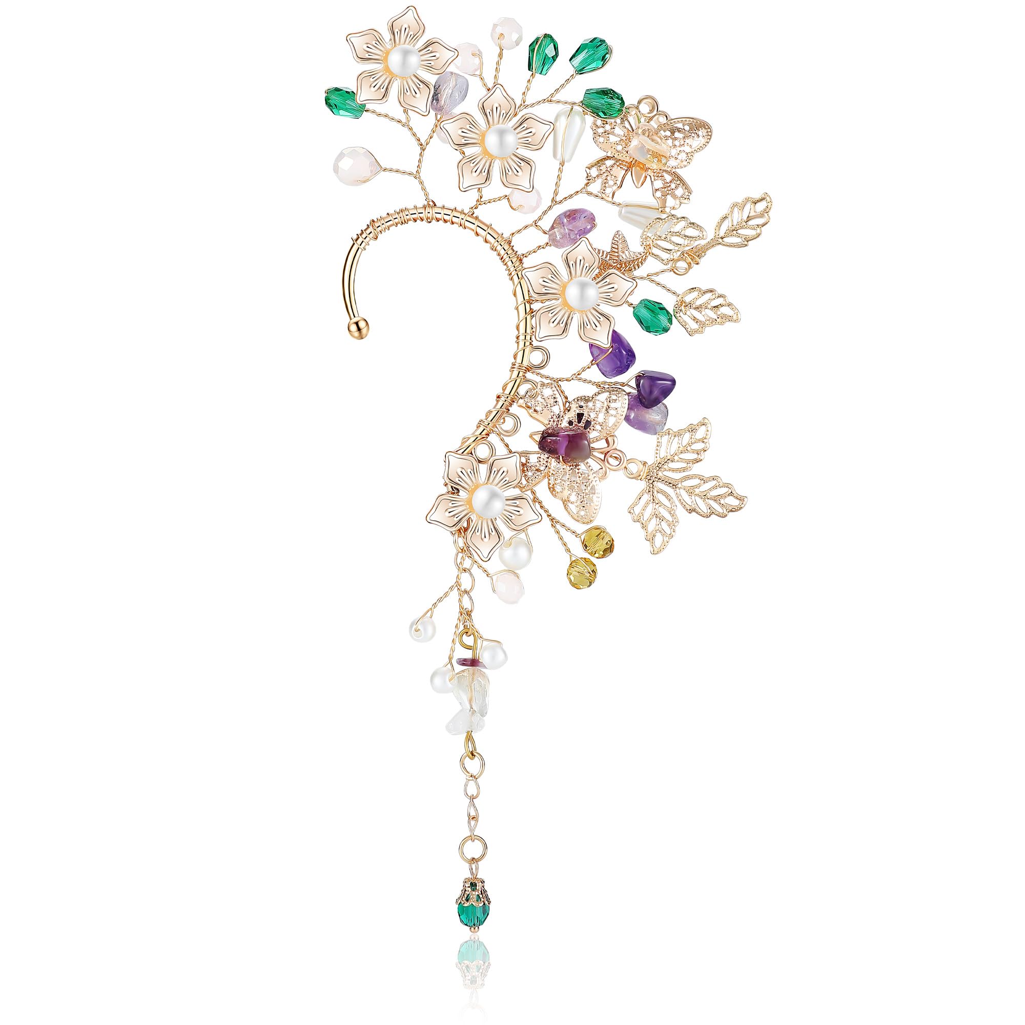 Yumikoo Handmade Elf Ear Cuff Fairy Flower Single Left Earring for Women
