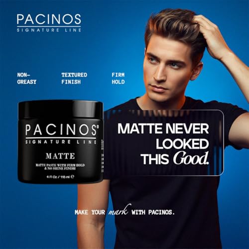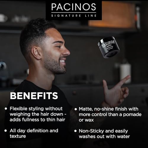 Pasta para cabello mate Pacinos Dryfi, sin brillo y con fijación flexible, para peinar con acabado y textura naturales, sin escamas, fórmula a base de agua, fácil de aplicar y lavar