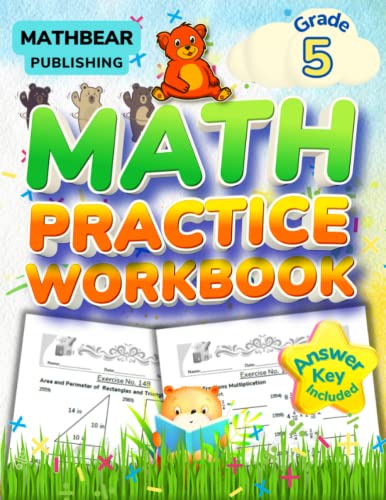 MathBear: Math Practice Grade 5: 5th Grade Math Practice Workbook: Decimals, Fractions, Percent, Multiplication, Long Division, Powers of 10, Geometry with Answers (MATHBEAR Workbooks)