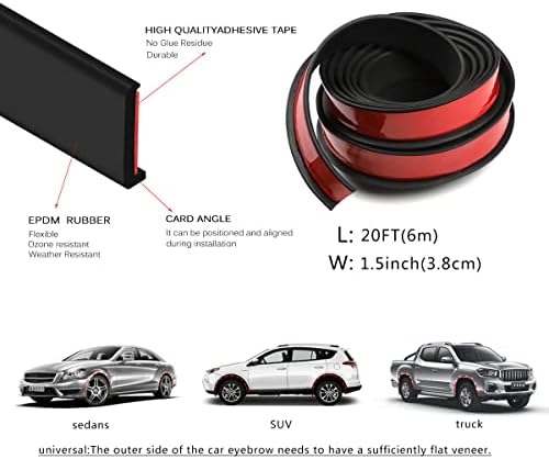 - 【Easy Installation】The product has good softness and plasticity. It does not require any tools. Remove the red protective film and paste it directly. It can be bent and pasted according to the radian of the wheel arch, and finally cut with scissors. After installation, press firmly on each position to make it more secure.
