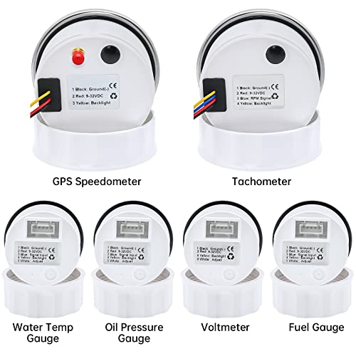 - 6 Gauge Set- Includes GPS Speedometer, Tachometer, Fuel Gauge, Water Temperature, Volt and Oil Pressure Gauge. 7 color backlight : red、green、blue、yellow、olivine、orange、purple