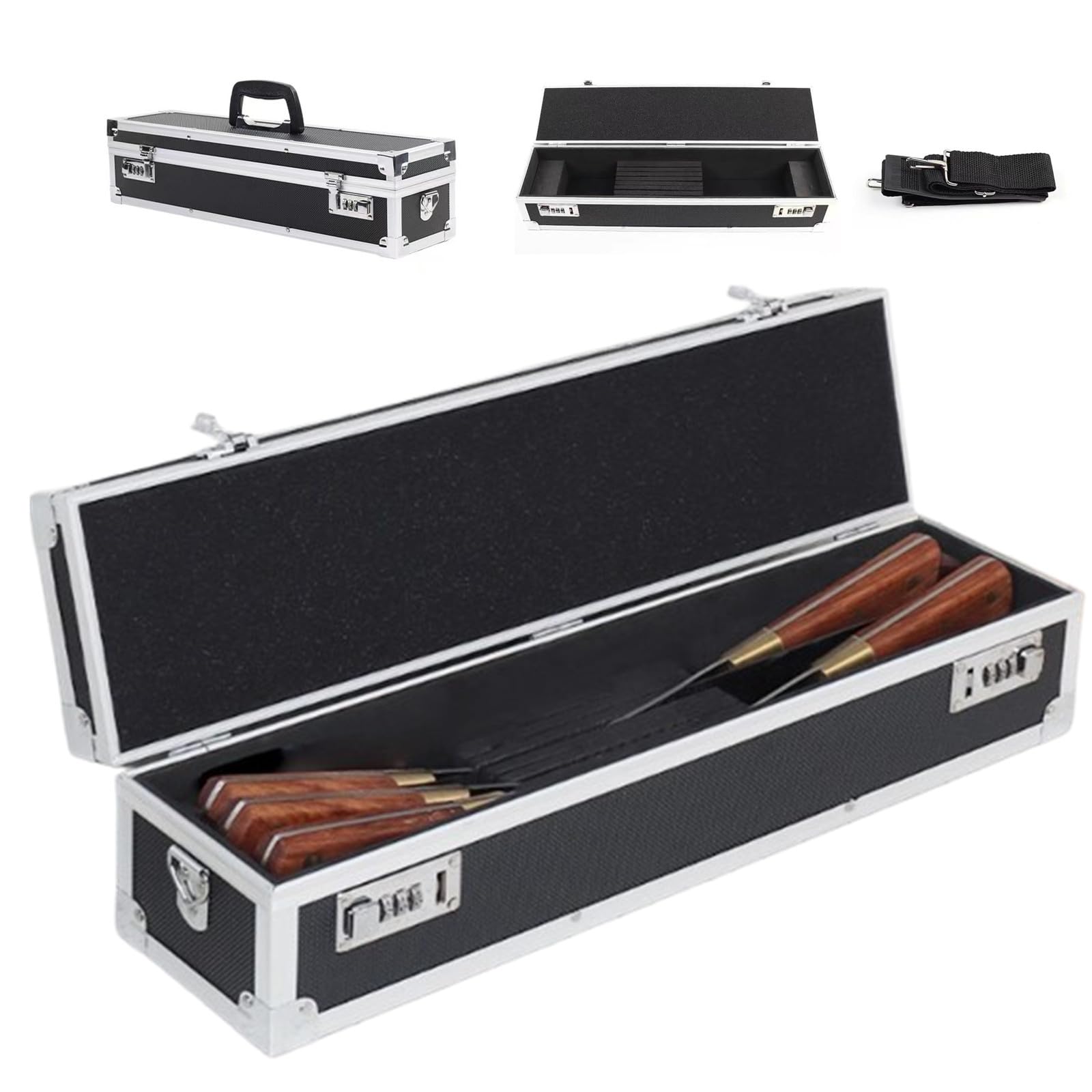 - 【For Your Different Sizes of Knives】The knife collection case with 5 different size slots perfectly solves your concern about the difficulty of storing large-size knives. The largest slots are up to 3.4" in width, and the orderly vertical layout can even accommodate your 15-in knife. Suitable for all kinds of collection knives.