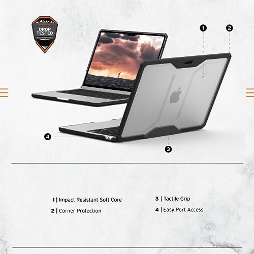 URBAN ARMOR GEAR UAG Designed for MacBook Air 13" Case 2022-2025 M2/M3/M4 (A3240 A3113 A2681) - Translucent Rugged Lightweight Slim Tactile Grip Laptop Protective Cover, Plyo Ice/Black