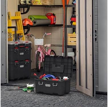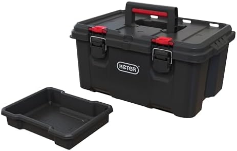 The Keter Stack & Roll Toolbox offers a super friendly way to keep your tools close to hand. With its durable lightweight construction and soft grip carry-handle, and ergonomic sound-indicating metal latches, transporting your tools around your home, shed or garage, is a breeze. Open up the toolbox, and you've got a deep storage compartment for larger items, and a handy cross system tray for extra organisation. Keep your tools and accessories securely stored and ready to use for your next DIY or hobby project. The Keter Stack & Roll Toolbox can be easily connected to the other storage units within the STACK N’ ROLL system, creating a versatile all-in-one tool and accessories storage and transport solution for your DIY or crafting needs.