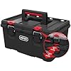 - Lightweight toolbox with ergonomic top handle with soft rubber grip and side grips for comfortable, easy portability