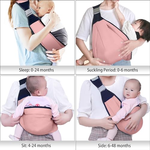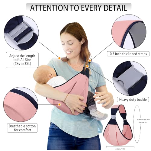Baby Sling Carrier - Adjustable Half Wrapped Sling Hip Carrier, One Shoulder Labor-Saving, Lightweight Cloth Fabric Baby Holder for Newborn to Toddler Up to 45 lbs (Pink)