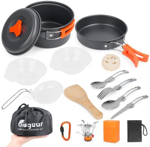 Bisgear Camping Cookware Backpacking Stove Mess Kit, Camping Pots and Pans Set, Camping Cooking Set