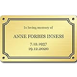 LARGER PERSONALIZED SOLID BRASS MEMORIAL PLAQUE: Create a timeless tribute to loved ones or pets with our custom engraved plaque. Measuring 5 inches by 3 inches, this larger plaque provides ample space for your personalized text across three lines, making it a unique memorial or commemorative sign for benches, walls, or doors. PRECISION CNC ENGRAVING FOR CLEAR TEXT: Our plaques feature CNC engraving technology, ensuring your custom text is engraved with precision and clarity. The larger size allows for bigger, more legible lettering, making your sentiments stand out prominently for years to come. EASY INSTALLATION WITH FOUR SCREW HOLES: Designed for convenience, the plaque comes with four screw holes—one in each corner—for secure and straightforward mounting. It's ideal for use on benches, walls, doors, desks, or machinery, fulfilling both personal and business signage needs with ease. PREMIUM QUALITY MATERIAL FOR LONG-LASTING USE: Made from solid brass, this engraved name plate offers longevity and an elegant appearance. The classic brass finish adds sophistication, making it suitable for memorials, nameplates, or business signage that requires a touch of class. VERSATILE USE FOR PERSONAL AND BUSINESS NEEDS: Whether you're grieving and wish to commemorate a loved one, need a larger name plaque for a doorway or desk, or require elegant signage for your business, this custom engraved plaque is versatile and fits a variety of applications. DIMENSIONS AND WEIGHT: The plaque measures 5 inches wide by 3 inches high and 2mm thick (125mm x 75mm x 2mm), weighing 40 grams (1.41 ounces). Its larger size makes it suitable for various locations while still being manageable for mounting and display. EMOTIONAL VALUE AND FUNCTIONALITY: More than just a sign, this brass memorial plaque holds deep emotional significance. It serves as a constant reminder of cherished memories and helps keep loved ones close in heart and mind. It's also an effective solution for clear and professional signage.