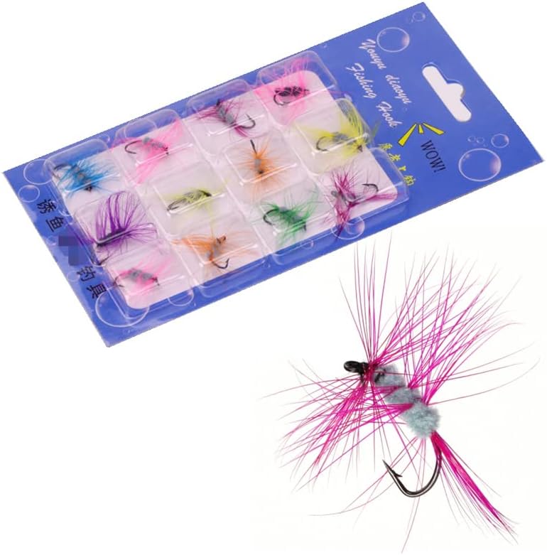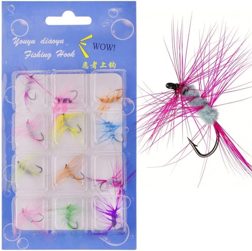 OriGlam 12pcs Fly Fishing Fly Kit Fly Handcrafted Fly Fishing Lure, Topwater Fishing Lures Fishing Lure for Trout Bass Salmon (Fly)