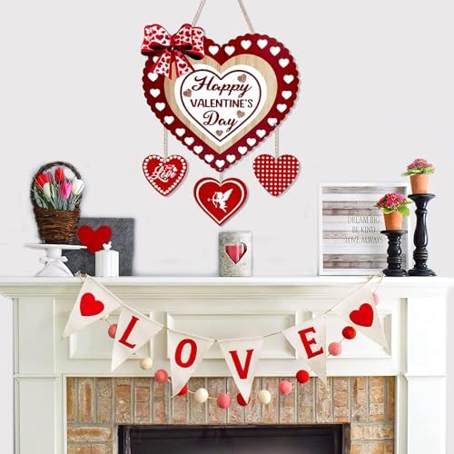 - Classic design: the valentines wreath is designed in the shape of heart printed with Happy Valentine's Day and three little heart wood slices, which are printed with cupid, ture love and polka dot, attractive and beautiful, which will bring lots of vitality to your daily life; Add sweet atmosphere to your house with these attractive signs