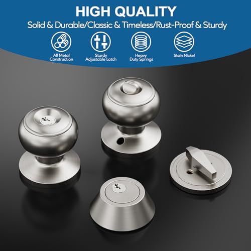 - [Specifications]: Conformed with ANSI Grade 3 Security, Exceeds 200,000 cycles. Satin nickel finish stainless steel knobs with high-grade copper lock and keys, high quality,durable, and resist corrosion.