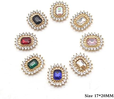 10PCS 17 * 20MM Rectangular Metal Rhinestone Flat Button Button for DIY Wedding Clothing Bags Hair Accessories Decorative Jewelry
